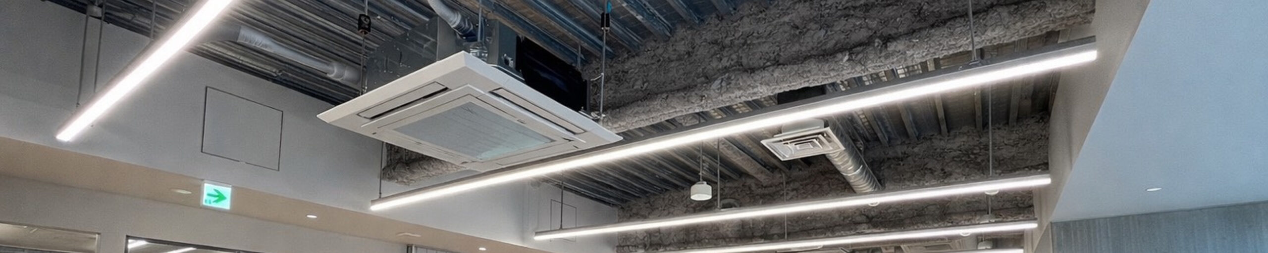 空調・換気・給排水の各種設備には、電気設備が必須です。当社では、各種機器の性能を最大限に発揮させる電気設備工事も合わせて承っております。動力盤の設置や電源工事・容量変更に伴う幹線工事など、設備機器と連動した電気工事の計画・施工もご発注いただけます。また、オフィスや店舗のLED照明への更新工事など、照明計画や更新工事についても対応。ビジネスの現場を適切な照度と省エネ面でサポートいたします。
