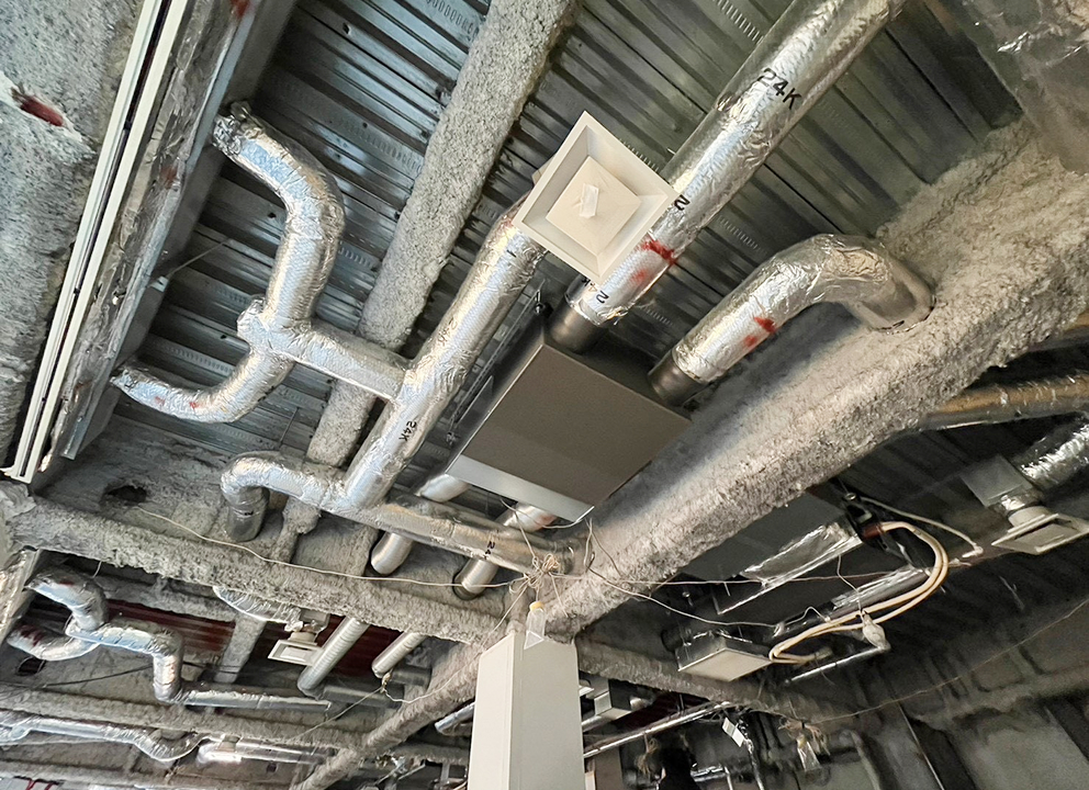 気密性の高い現代の建築物において、換気設備は空気の質を維持する大切な設備です。当社では、建物全体の給排気や厨房やオフィスの局所排気など、省エネと快適性を両立する給排気システムの計画・設計を承っております。空調機器に付随する各所の給排気設備や厨房内の角ダクト・フードの製作など、用途と場所に合わせた計画の作成から工事まで一貫して対応。多様化するニーズに応え、利用者が安心して過ごせる環境を整えます。